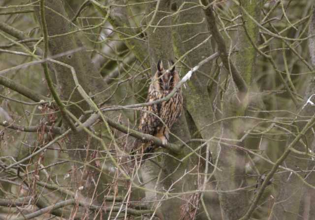 Long-eared Owls are the most difficult to see. Sometimes they gather in communal roosts of perhaps 3–5 birds, a few years back there was one such gathering in Rother Valley Country Park.
