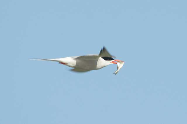 The Common Tern is not such a traveller, wintering off the coast of Africa. They are somewhat Gull-like but much daintier and sport a black crown, their flight is very buoyant and hovering as they hunt over the water before diving at their prey.