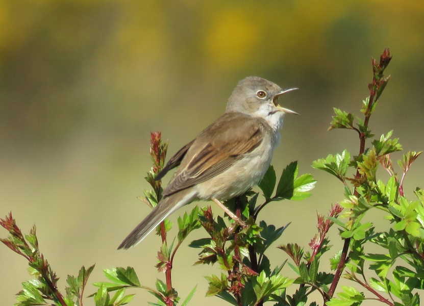 Also seen here are Yellow Wagtails, the male in splendid yellow around the head and chest, the female more camouflaged with subdued colours. Common Whitethroat are also resident by the wall, at least 3 pairs, the white throat being diagnostic plus their constant croaky song usually delivered from a conspicuous perch. The other common bird at this location is the Reed Bunting, the male identified by its black head.
