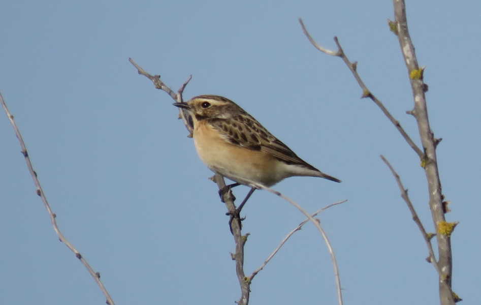 There have been two recent sightings of migrant birds on the stone wall beside the footpath to South Anston. Now is the time of year that the summer visitors are starting to migrate back south. Two Wheatears and a Whinchat were recorded at the beginning of the month. Both are colourful birds, the Whinchat smaller of the two has a white eye stripe, the Wheatear has the obvious white rump very visible in flight. If you take a regular walk across towards South Anston then seeing one of the above species is very possible.